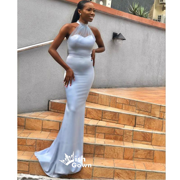 Sexy Blue Mermaid Halter Sleeveless Maxi Long Bridesmaid Dresses Onlin