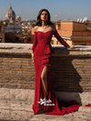 Elegant Red Long Sleeve Off Shoulder Sequins Side Split Mermaid Long Prom Dresses, WG23