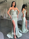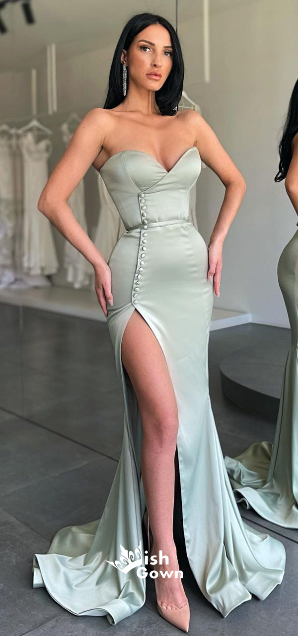 Sage Green Strapless Button Side Split Mermaid Long Evening Gowns Prom Dresses , WGP126