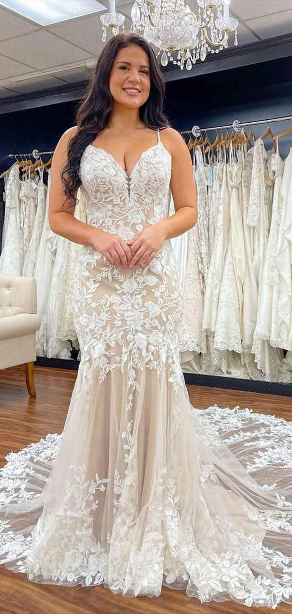 Mermaid Lace Applique Elegant Bridal Long Wedding Dresses, WDH078