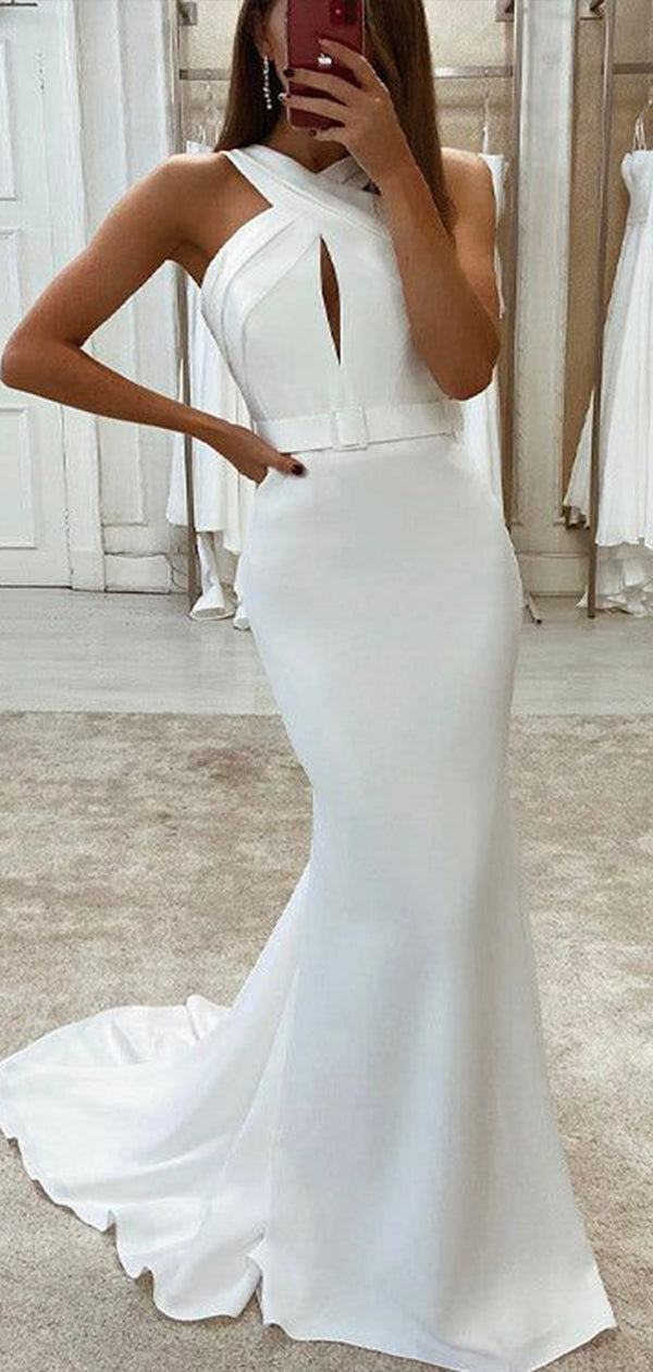 Unique Mermaid Halter Sleeveless With Train Popular Bridal Long Wedding Dresses, WDH114