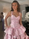 Cute Pink Spaghetti Strap A-Line Short Satin Homecoming Dresses For Party,EPT657