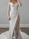 Elegant White Long Sleeve Lace Mermaid Long Wedding Dresses With Sweep