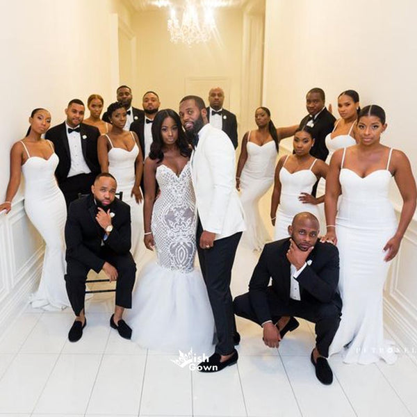 Simple White Mermaid Spaghetti Straps Maxi Long Bridesmaid Dresses Online, WGM158