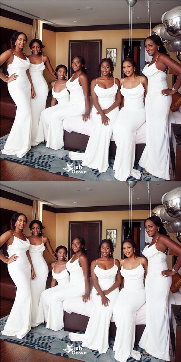 Simple White Mermaid Spaghetti Straps Maxi Long Bridesmaid Dresses, WG